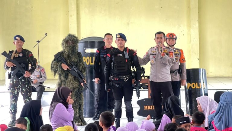 JBK, blambangan __ Mako Batalyon C Pelopor Satbrimob Polda Lampung menerima kunjungan edukatif dari Taman Kanak-Kanak (TK) se-Kecamatan Blambangan Pagar...