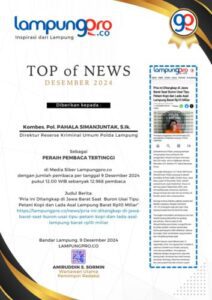 “Pada hari ini, kami dari Lampungpro.co menyerahkan Piagam Top of News 2024 kepada Ditreskrimum Polda Lampung atas keberhasilan pemberitaan kasus penggelapan kopi di Lampung Barat yang menjadi berita terpopuler, dengan lebih dari 13 ribu pembaca,” ujar Amiruddin.